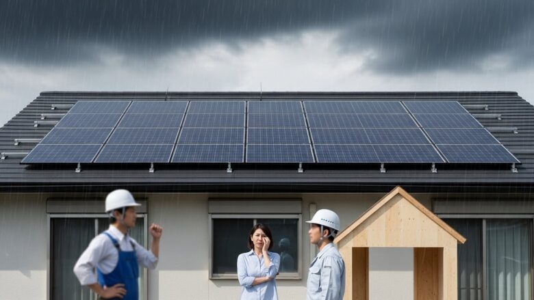 新築時から太陽光を想定して設計された住宅であれば問題になりにくいですが、 後付けの場合、そもそもその重さを前提に構造計算されていない家も多いのが現実です。